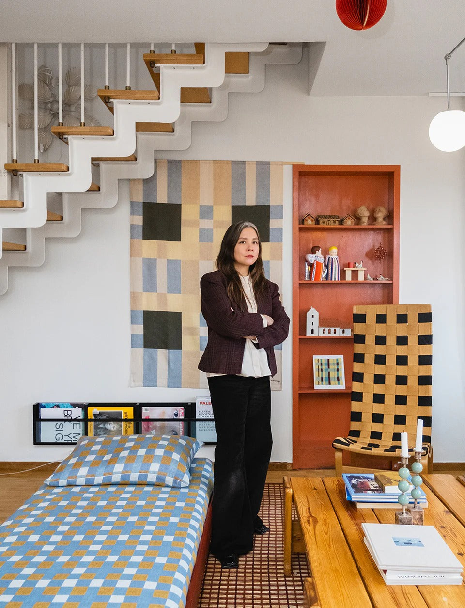 Evelinas Arbeit ist sowohl ein Statement als auch eine Einladung: lebhafte Farben und messerscharfe geometrische Formen, die lebendig wirken, fast architektonisch.