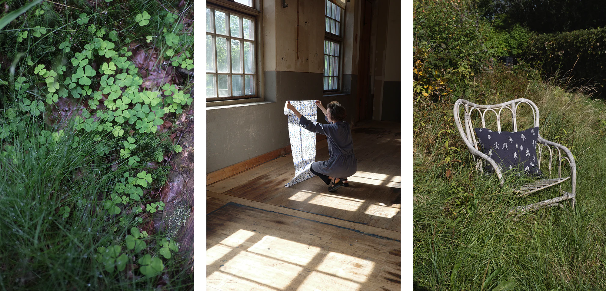 Heute entwerfen wir Poster und Wandbilder, Heimtextilien, Tischdecken, Kunsthandwerk, Einrichtungsakzente und Kissen – allesamt inspiriert von einem tiefen Respekt vor der Natur. Was als Schnappschüsse aus Dunkers Alltag und Spaziergängen in der Natur begann, hat sich zu einer reichhaltigen Kollektion von Mustern entwickelt, die Innenräumen weltweit Wärme und Charakter verleihen.
